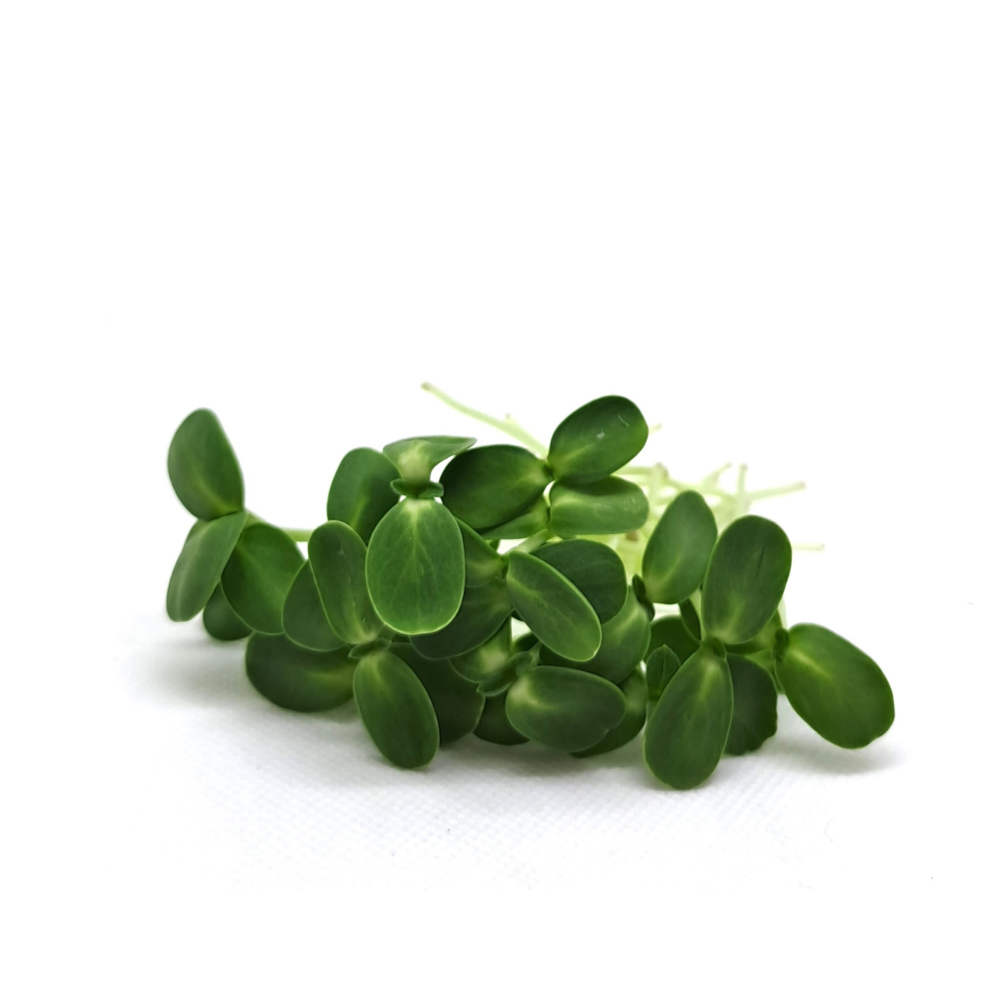 A living mix of detoxifying microgreens: Sunflower, Coriander, Red Chard, and Black Kale.